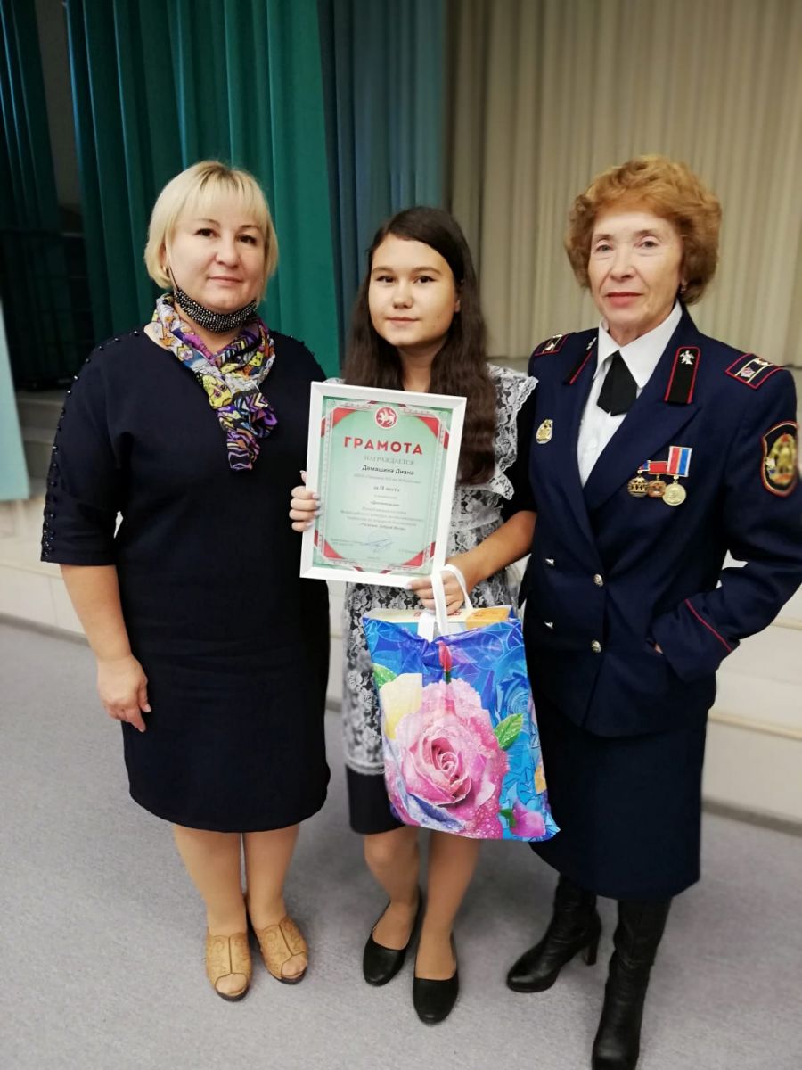 Уку елын башлануга, укучыларның уңышларын бәяләп, мактау грамоталары килә башлады. Янгын куркынычсызлыгы буенча “Человек – доброй воли” (“Яхшы холыклы кеше”) Бөтенрәсәй әдәби конкурсының Республикакүләм этабында 10б сыйныфы укучысы Демашина Диана “Драматургия” номинацияседә 2 урын яулады. Диананы котлау өчен Яр Чаллы шәһәре ВДПО башлыгы Власова Любовь Александровна килде. Дианага истәлекле бүләкләр тапшырды, киләчәктә дә гимназия укучыларын янгынга каршы уздырыла торган бәйгеләрдә катнашырга чакырды.