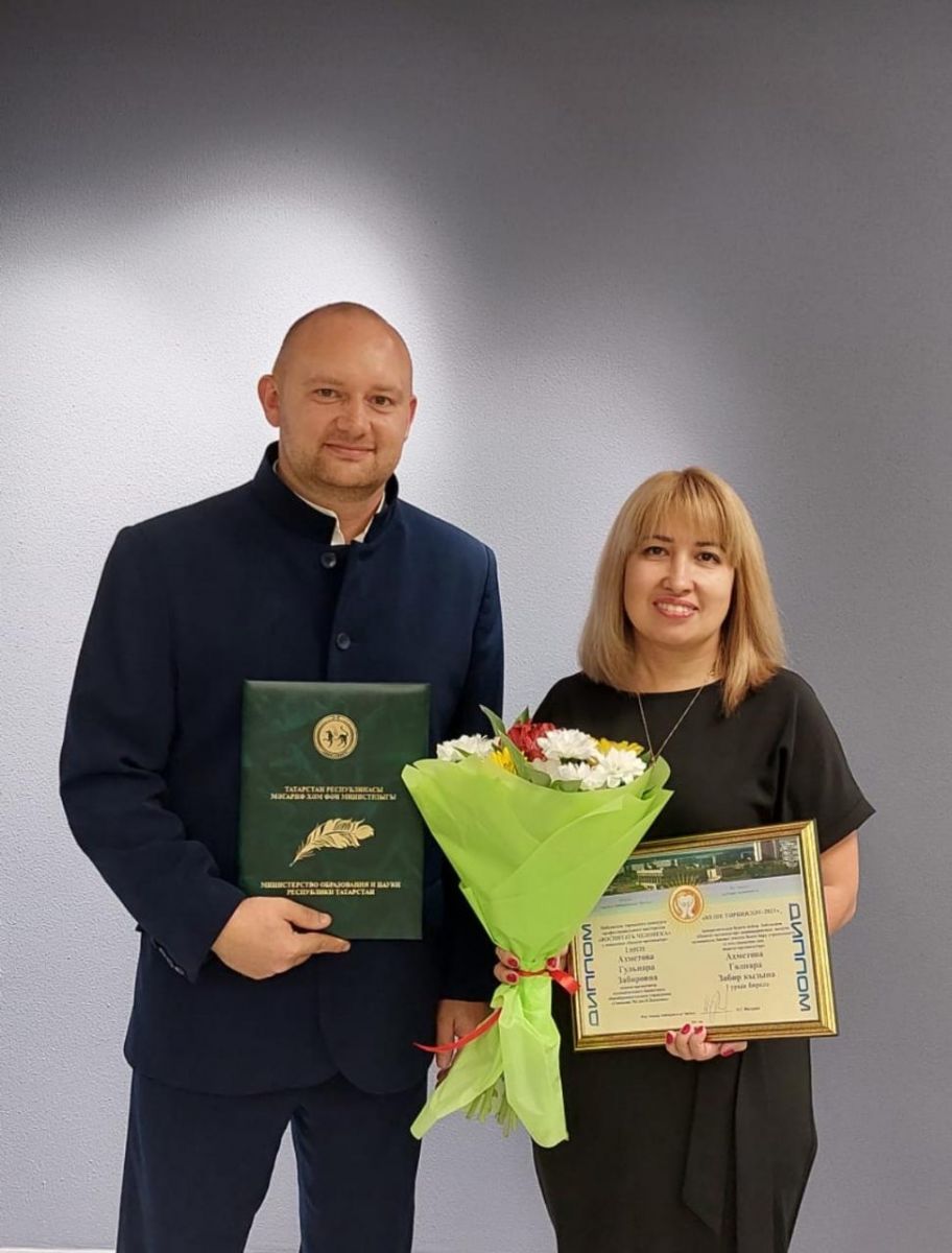 Яшь буынга белем һәм тәрбия бирү системасына керткән зур өлеше, күпьеллык намуслы хезмәте өчен гимназиябезнең директоры Гарифуллин Айдар Хәкимҗан улы Татарстан Республикасы Мәгариф һәм фән министрлыгының Мактау грамотасы белән бүләкләнде.