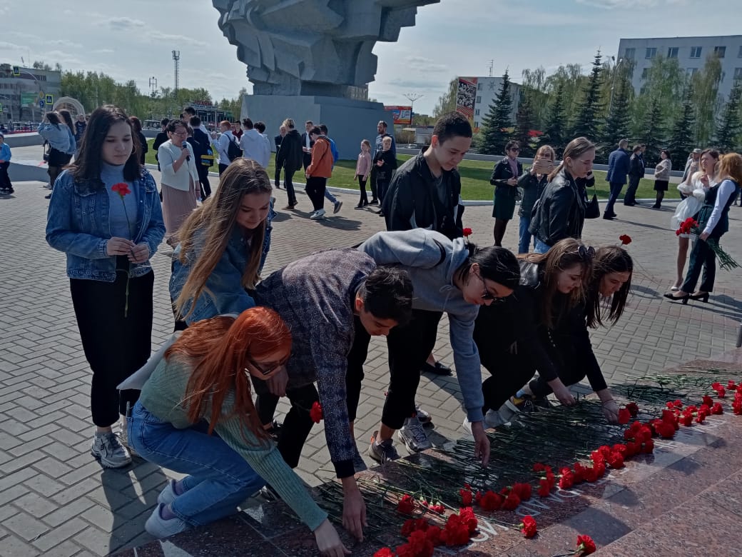 Бәйрәмнәрнең иң матуры - ул Бөек Җиңү көне. "Мәңгелек ут" мемориаль комплексына чәчәкләр салу - сугыштан кайтмый калган якташларыбызга, сугышта катнашкан әби - бабайларыбызга хөрмәт билгесе. Без, балалар, сезгә хөрмәтле! Без онытырга тиеш түгелбез!