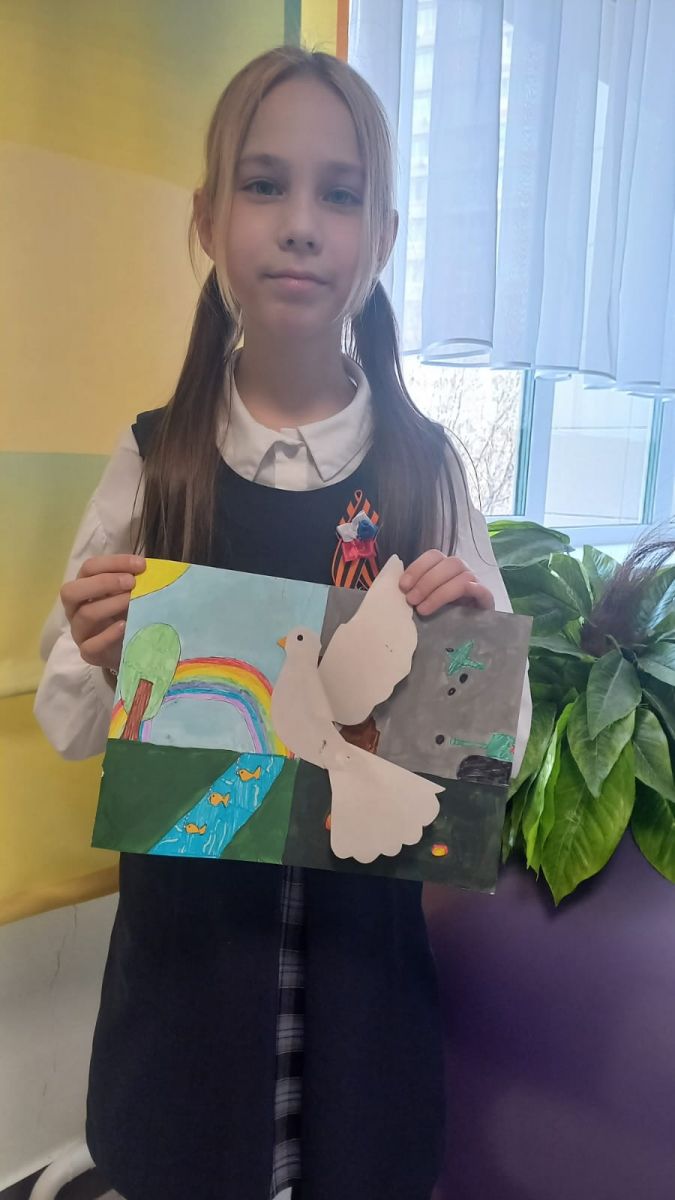 5) Голубь белый - мир небесный! Песня в облака летит! Славный день и миг чудесный, Победитель - знаменит! В память о почтовых голубях... Во 2в классе гимназии 2 им.М.Вахитова прошла беседа о роли белых почтовых голубях в годы Великой Отечественной войны. После беседы ученики нарисовали рисунки. В своих работах они показали то, как голуби невидимыми нитями связывали солдат с родными. В годы Великой Отечественной войны почтовых голубей применяли разведывательные отделы армии и партизанские отряды для оперативной передачи сообщений. В отличие от радиосвязи или телефонных линий, голубеграммы исключают радиоперехват или прослушивание и, соответственно, исключают утечку информации. Фото1, Фото2