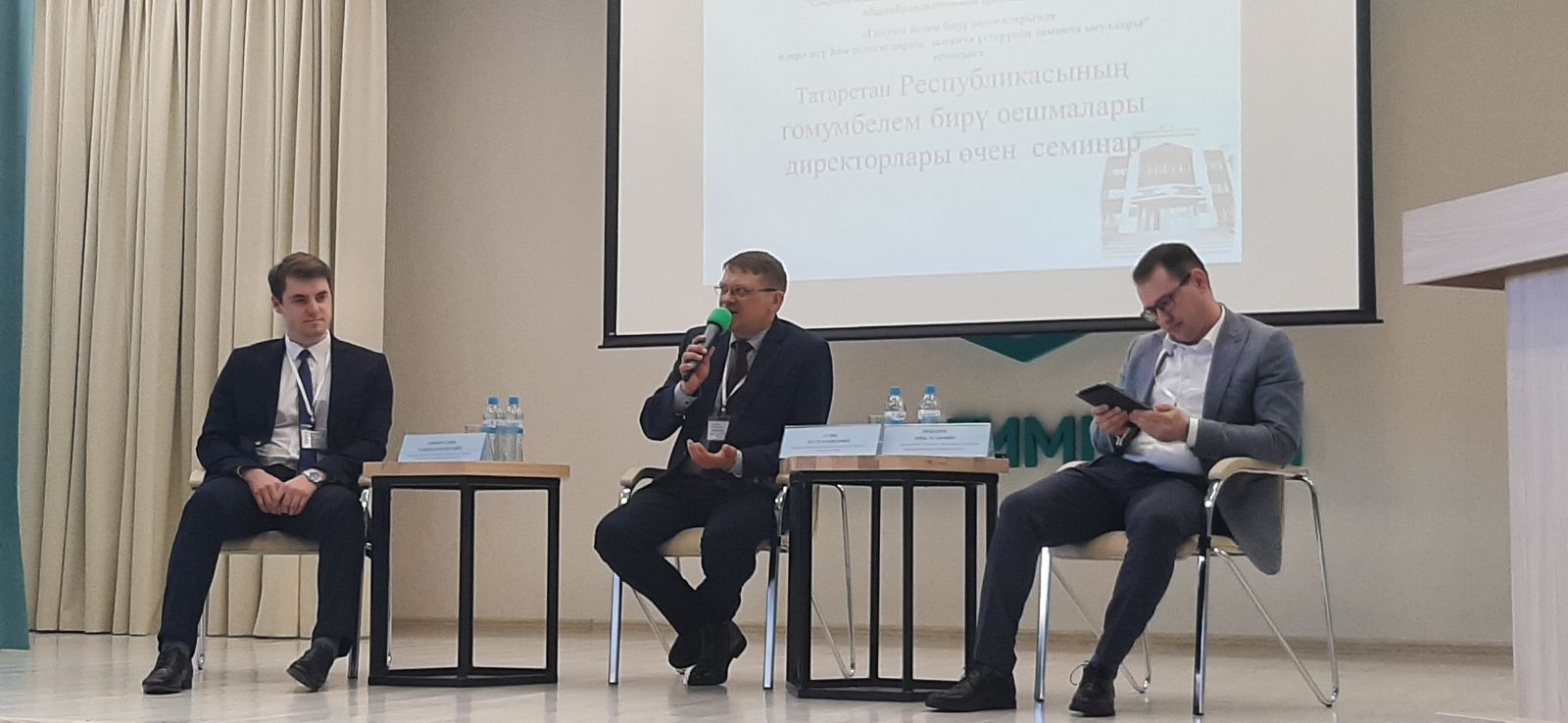 Сегодня, 26 марта, в нашей гимназии прошел республиканкий семинар для директоров общеобразовательных организаций Республики Татарстан на тему "Современные подходы управления и развития педагогов в общеобразовательной организации". Среди участников семинара были заведующий лабораторией ГАОУ ДПО ИРО РТ Шаехов М.Р., начальники Управления образования исполнительного комитета муниципального образования Казани Ризванов И.А., города Набережные Челны Хузин Р.Н., Нижнекамского муниципального района Гиниятуллин Р.М., директора школ из Альметьевска, Бугульмы, Казани, Набережных Челнов, Нижнекамска.