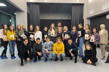 Бүген безнең гимназия укучылары Яр Чаллы дәүләт драма театрында кунакта булдылар, "Күзгә - күз" дип исемләнгән түгәрәк өстәлдә "Шәһәр. Нокта. Брежнев" спектакле хакында фикер алыштылар.