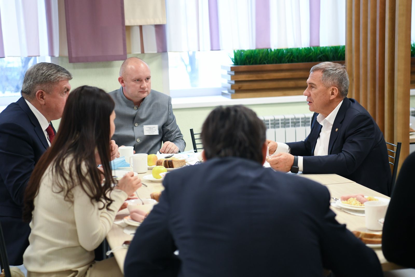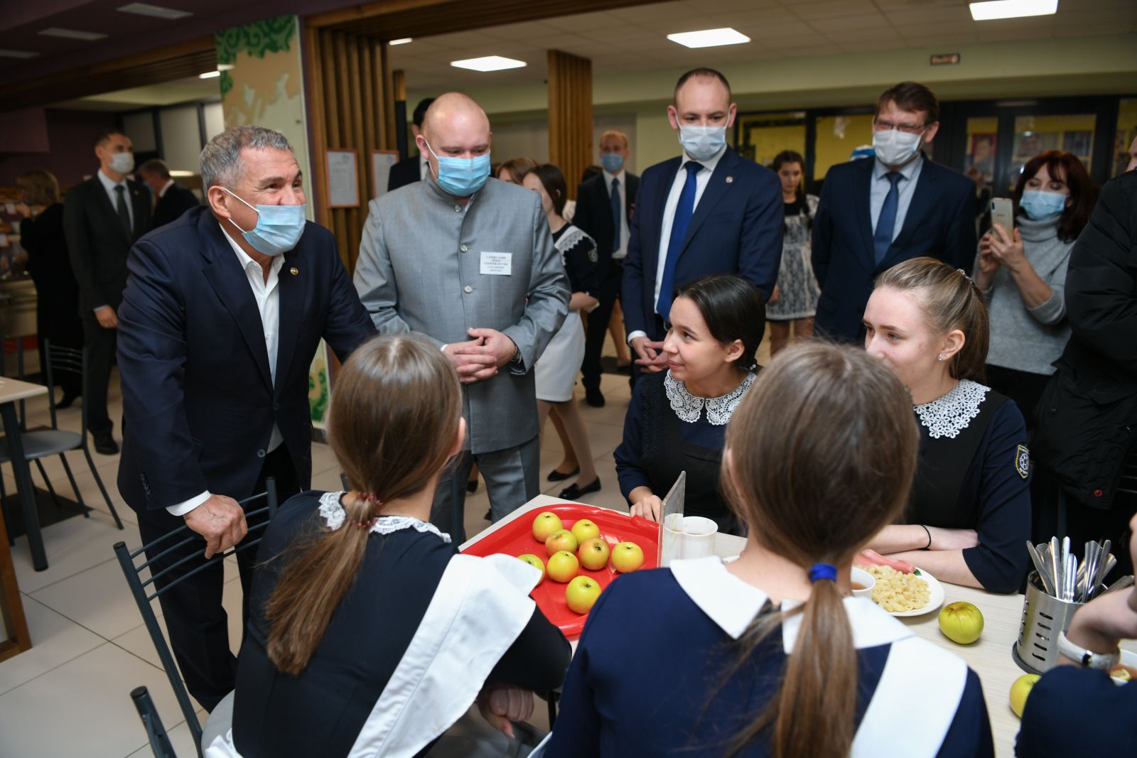 Сегодня в рамках рабочей поездки в Набережные Челны Президент Республики Татарстан Рустам Минниханов посетил нашу гимназию, где ознакомился с организацией питания детей.