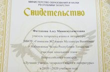 Фаттахова Алсу Миннемөхәмәт кызын, “Ел укытучысы-2020” һөнәри осталык бәйгесенең төбәк этабында җиңеп, республика этабына чыгуы белән котлыйбыз! Алга таба да уңышлар телибез!