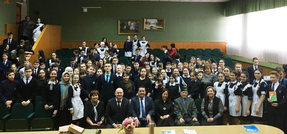 Әлеге вакыйга уңаеннан 28 февральдә безнең гимназиядә зур чара узды. Безгә кунакка язучы, публицист, драматург, шагыйрь, Татарстан язучылар берлеге әгъзасы Абдуллин Фәтхулла Абдулла улы, драматург, Татарстан республикасының атказанган сәнгать эшлеклесе, Татарстан язучылар берлегенең әгъзасы Салихов Данил Хәбибрахман улы, шагыйрь, журналист, "Көмеш кыңгырау газетасының баш мөхәррир урынбасары Фәттахова Лилия килделәр. Алар 1нче һәм 4нче сыйныф укучыларының дәресләрендә, тарих музеенда булдылар, гимназия укучыларының "Минем гимназиям" дигән газетасы белән таныштылар, "Җиде энҗе" дип аталган театральләшкән тамаша карадылар. Элеге очрашу кунакларыбызның күңелендә җылы истәлек булыр дип ышанып калабыз.
