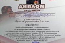 Команда достойно выступила в Республиканских соревнованиях по военно - прикладным видам спорта, посвященных 100-летию со дня рождения выдающегося конструктора стрелкового оружия М.Т.Калашникова и 75-й годовщине Победы в Великой Отечественной войне среди юнармейских отрядов в рамках ВВПОД "ЮНАРМИЯ" РТ. Молодец! -