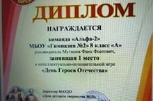 Поздравляем команду учащихся гимназии "АЛЬФА-2", занявшую I место в интеллектуально- познавательной игре "День Героев Отечества".