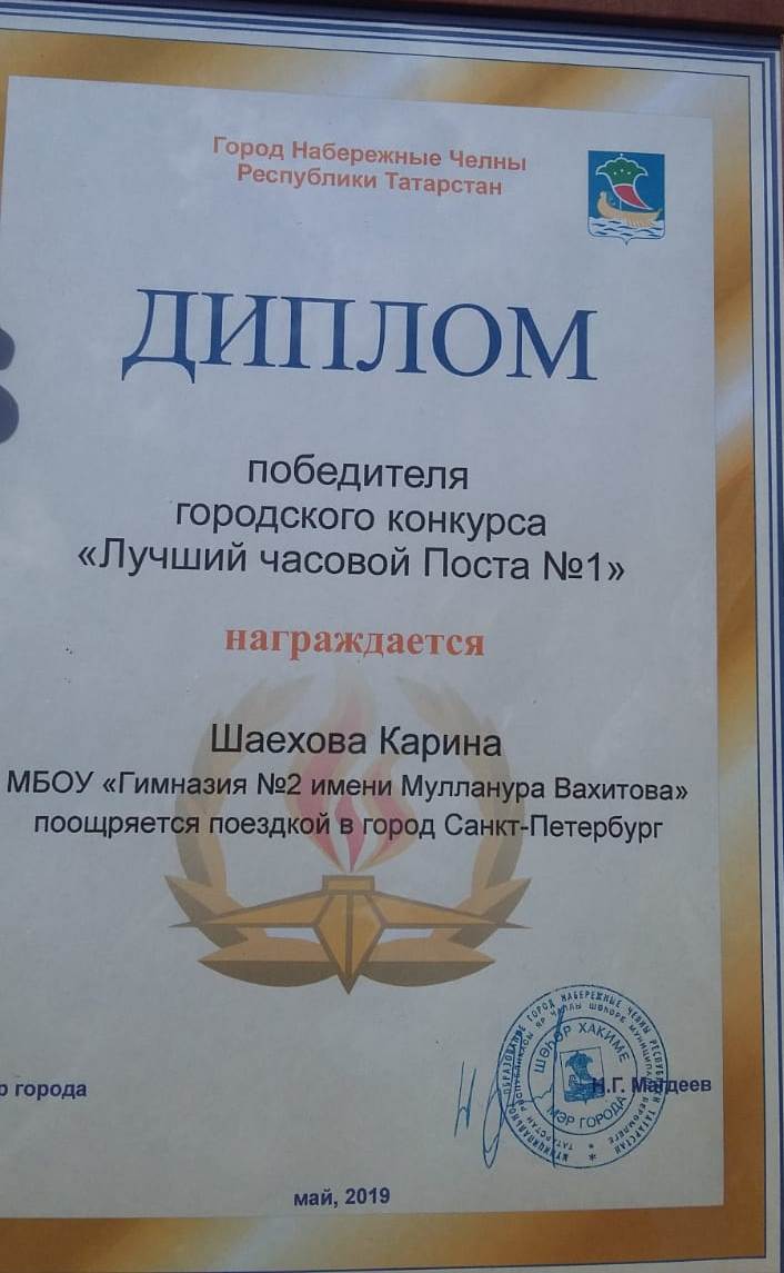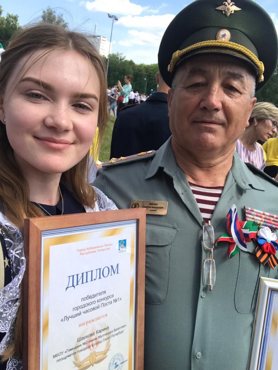 Шаехова Карина стала победителем городского конкурса "Лучший часовой Поста № 1" и поощряется поездкой в город Санкт-Петербург.