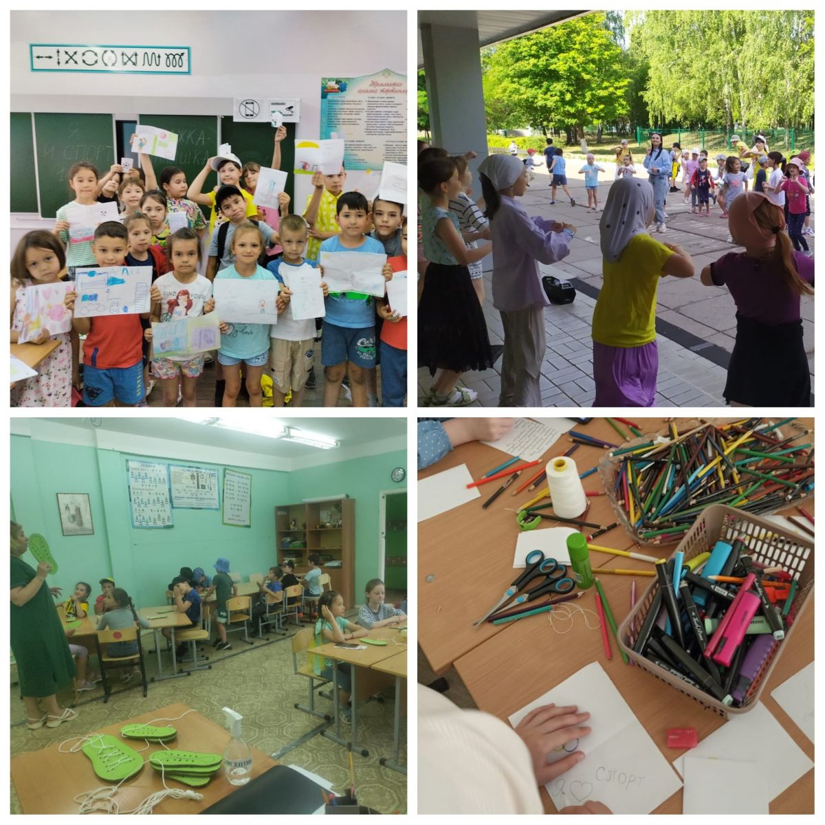 29 июня - после бассейна дети прошли научно-технический квест, сделали книжки-малышки "Я и спорт", посетили мастер-класс "Будь ярким", день завершился спортивными играми на спортивной площадке.