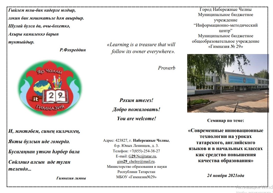 Муниципальное бюджетное общеобразовательное учреждение «Гимназия №29» г. Набережные Челны/«29 нчы гимназия» муниципаль бюджет гомуми белем бирү учреждениесе - новости