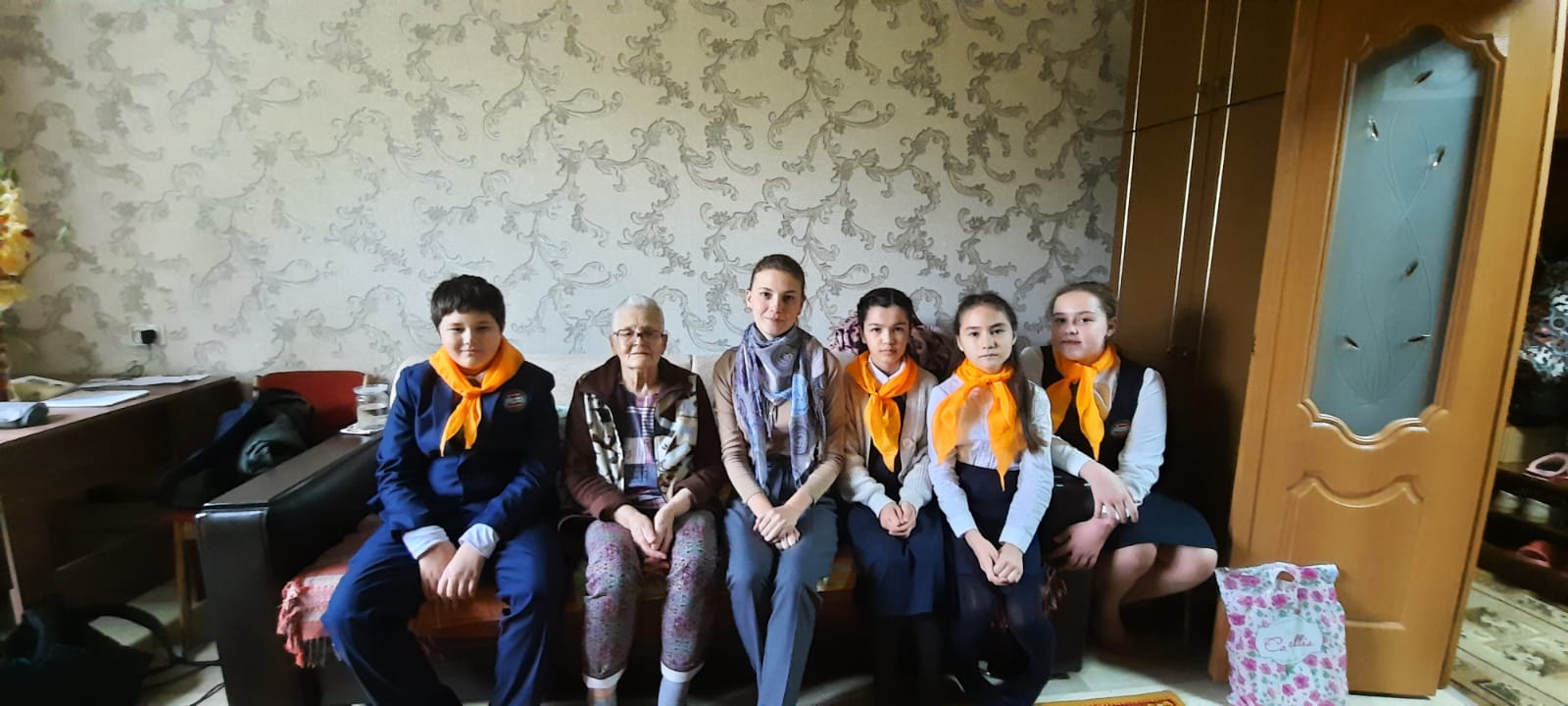 С 1.10 по 10.10 прошла декада Пожилого человека. Тимуровский отряд 6б класса МБОУ «Гимназии №29» под руководством Галимовой А.В., руководителя тимуровского отряда посетили труженицу тыла Бабкину Зинаиду Михайловну, Костяева Николая Михайловича и Костяеву Зинаиду Иосифовну Принесли в подарок продукты и просто пообщались с ветеранами.