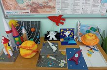 12 апреля в честь 60 лет полёта Ю.А.Гагарина в космос были проведены различные мероприятия: классные часы, викторины и выставка посвящённая дню Космонавтики . -