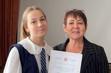 За вклад в становление и развитие Детского совета при Уполномоченном по правам ребёнка в РТ, активное взаимодействие с представителями детского сообщества по их правовому просвещению приказом Уполномоченного по правам ребёнка в РТ ученица 10 класса награждена Благодарственным письмом уполномоченного по правам ребенка в РТ.