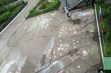 Прошёл конкурс рисунков "Наша страна Россия". Воспитанники лагеря украсили школьный двор патриотичными рисунками.