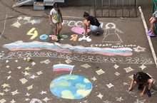 В преддверии «Дня России» в пришкольном лагере прошёл творческий конкурс рисунков на асфальте «Наша страна — Россия»