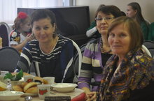 В актовом зале гимназии было организовано импровизированное кафе для гостей – учителей нашей гимназии, находящихся на заслуженном отдыхе и частников хора ветеранов «Подснежник». Гости с удовольствием пели песни своей молодости, пили чай с пирожками. Тимуровские отряды «Короб добра» и «Искатели» подарили ветеранам праздничный концерт и подарки.