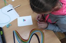 В пришкольном лагере проходят интересные мастер-классы. На занятии по квиллингу ребята учились создавать красивые панно из бумажных цветных полос.