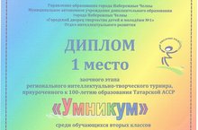 Учащиеся 2а класса заняли первое место в заочном этапе регионального интеллектуально-творческого турнира, приуроченного к 100-летию образования Татарской АССР. Молодцы!