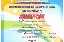 В конце 2019 года в СОШ №37 состаялся региональный конкурс песен на английском языке. Гимназию представляла Имамова Эмилия 6в класс. Прекрасный вокал и безупречное произношение принесли победу нашей участнице! Выражаем признательность педагогам и родителям за помощь в подготовке к конкурсу!