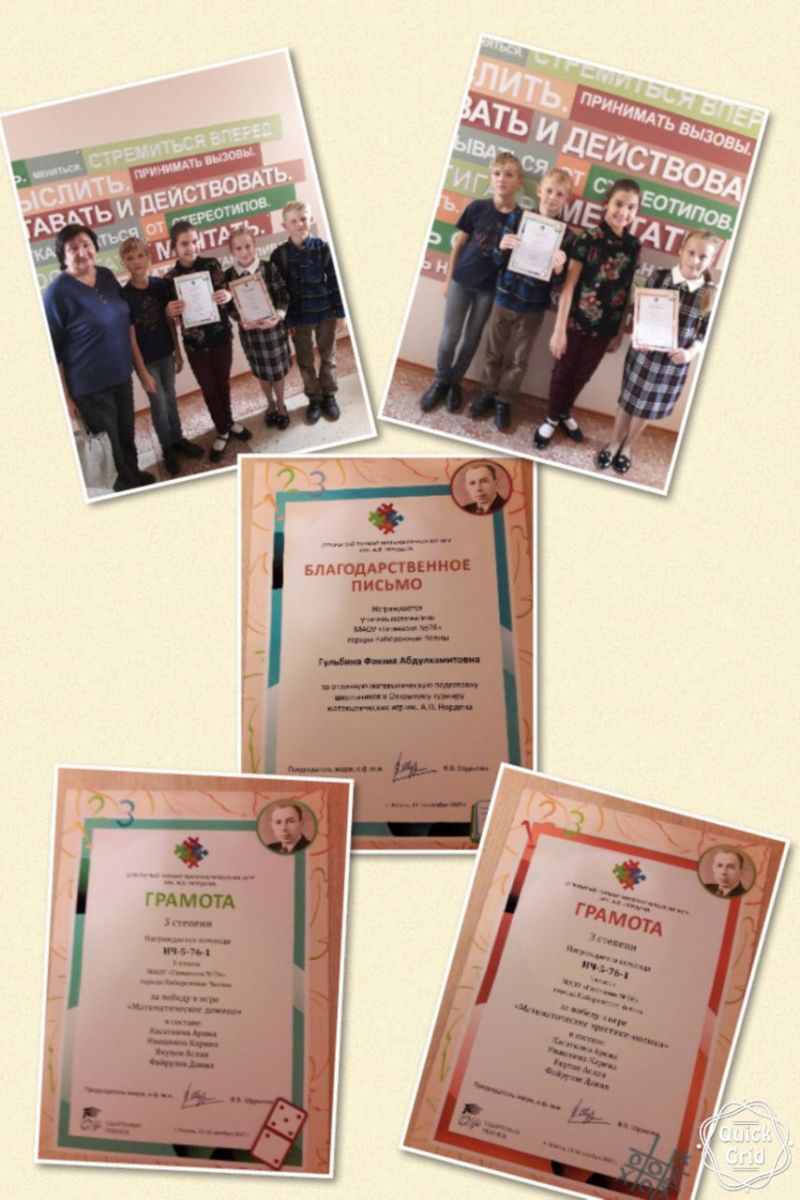Учащиеся 5-х классов гимназии под руководством Гульбиной Ф.А. приняли участие во Всероссийском турнире Математических игр имени Нордена и завоевали грамоты 3 степени за победу в "Математическом домино" и "Математических крестиках-ноликах"