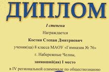 Антипова Анна из 11б класса стала призером заключительного этапа во Всероссийской олимпиаде школьников по обществознанию. Заключительный этап олимпиады проходил в городе Пермь. Со всей страны были приглашены 247 учащихся 9-11 классов, успешно прошедших школьный, муниципальный и региональный отборочные этапы, меньше половины из них смогли стать победителями и призерами. Анна участвовала в заключительном этапе олимпиады по обществознанию уже в третий раз! Дважды она становилась призером и один раз одержала победу! От всей души поздравляем с прекрасным результатом Антипову Анну и ее учителя Виктора Сидимировича Айкина!