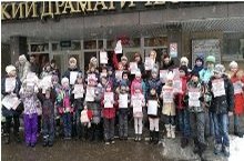 Мы вырезаем эмблемы акции, чтобы прикрепить к одежде. Сделали несколько фотографий около школы. В понедельник, 26 марта вышли на улицу для встречи и беседы на татарском языке. Было интересно!