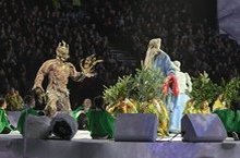 В награду за активное участие в Республиканском проекте «Культурный дневник школьника» я получила приглашение на главную новогоднюю ёлку Республики. Президентская ёлка Республики Татарстан собрала более 7000 человек. От Набережных Челнов приглашённых на ёлку ребят повезли на семи больших автобусах. Ребята из Набережных Челнов имели отличительную атрибутику: красные шарфики и светящиеся палочки.