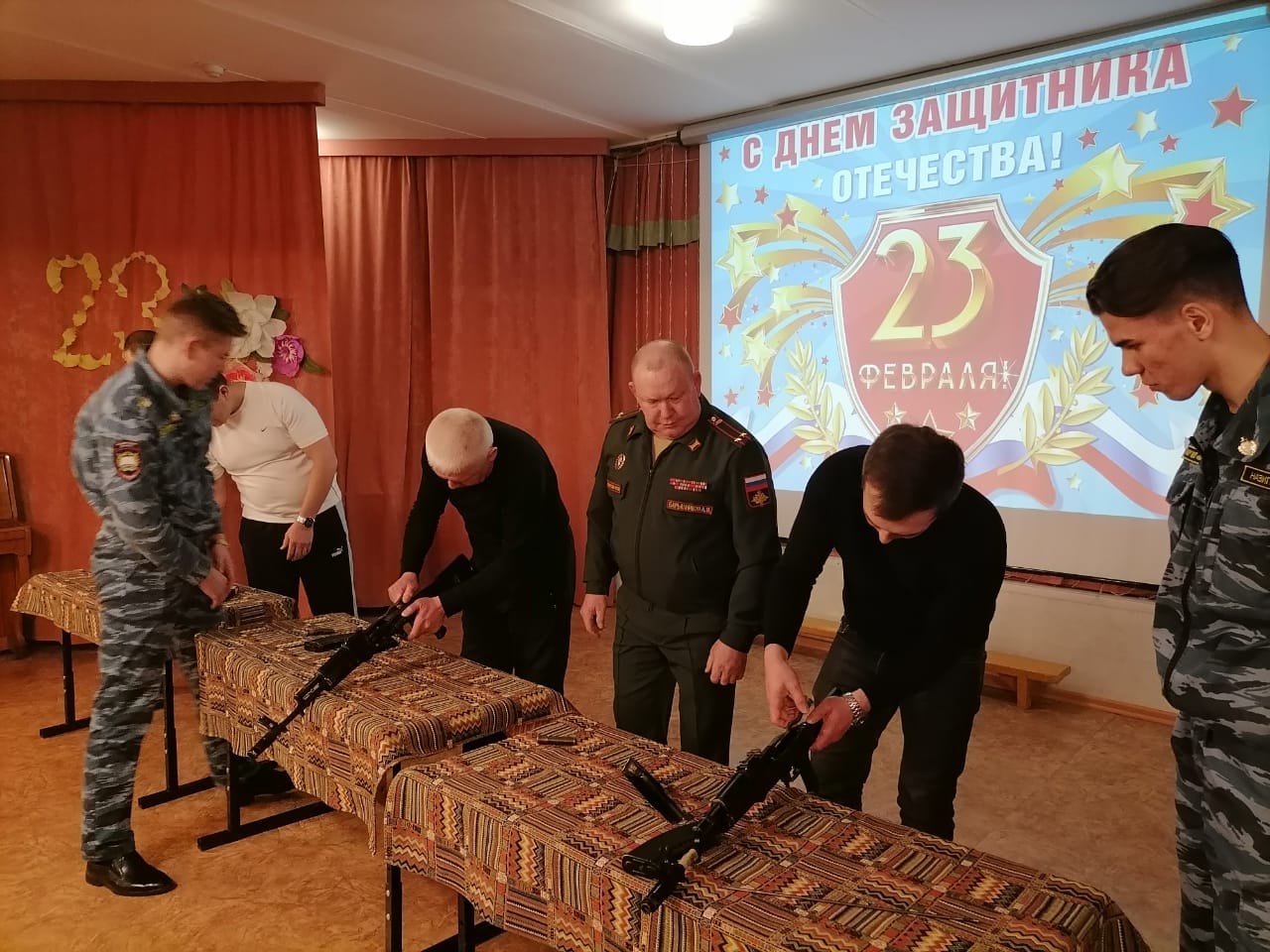 -демонстрацию оружия, гранат, разборка-сборка автомата АК-74, снаряжение магазина