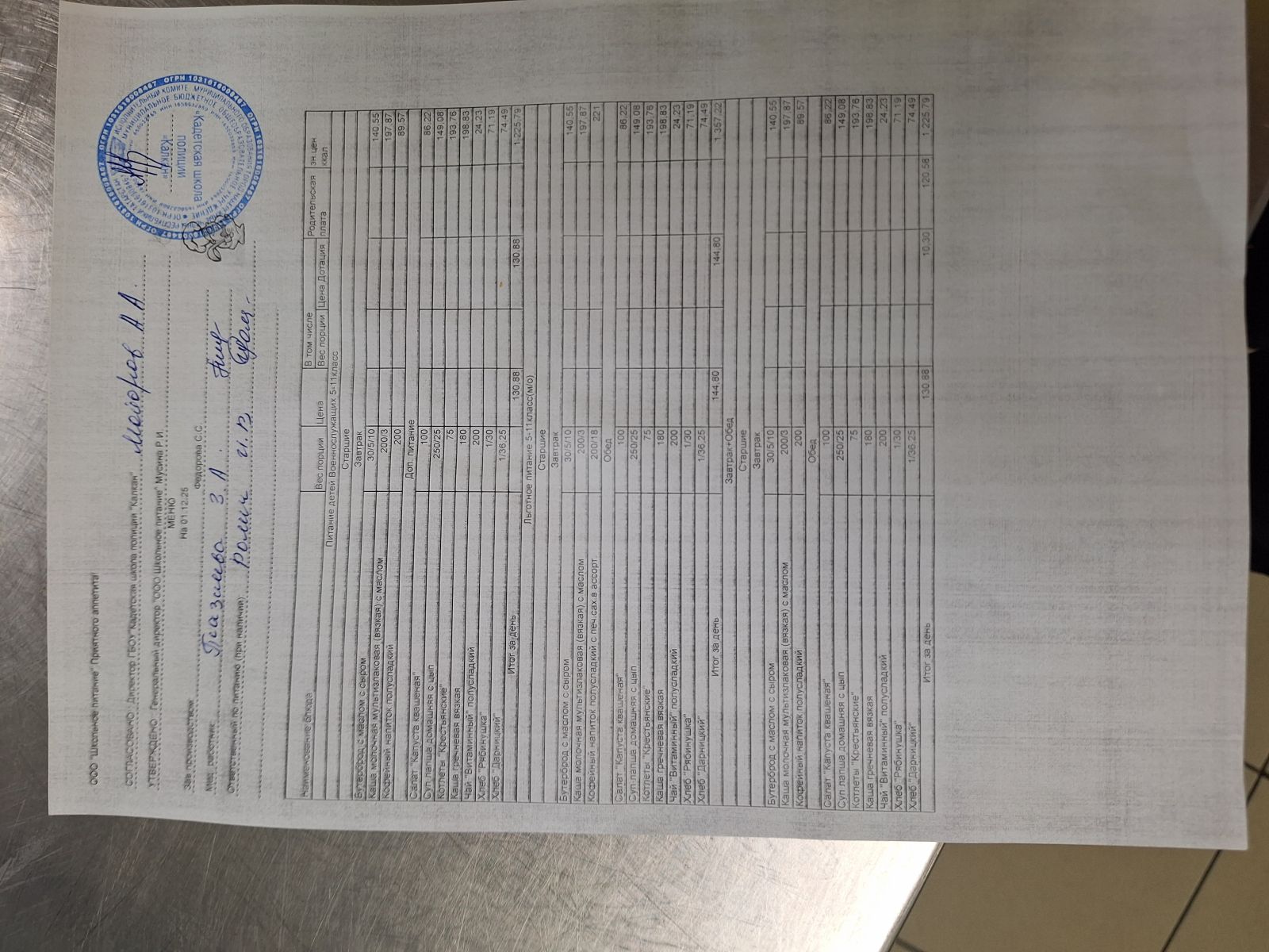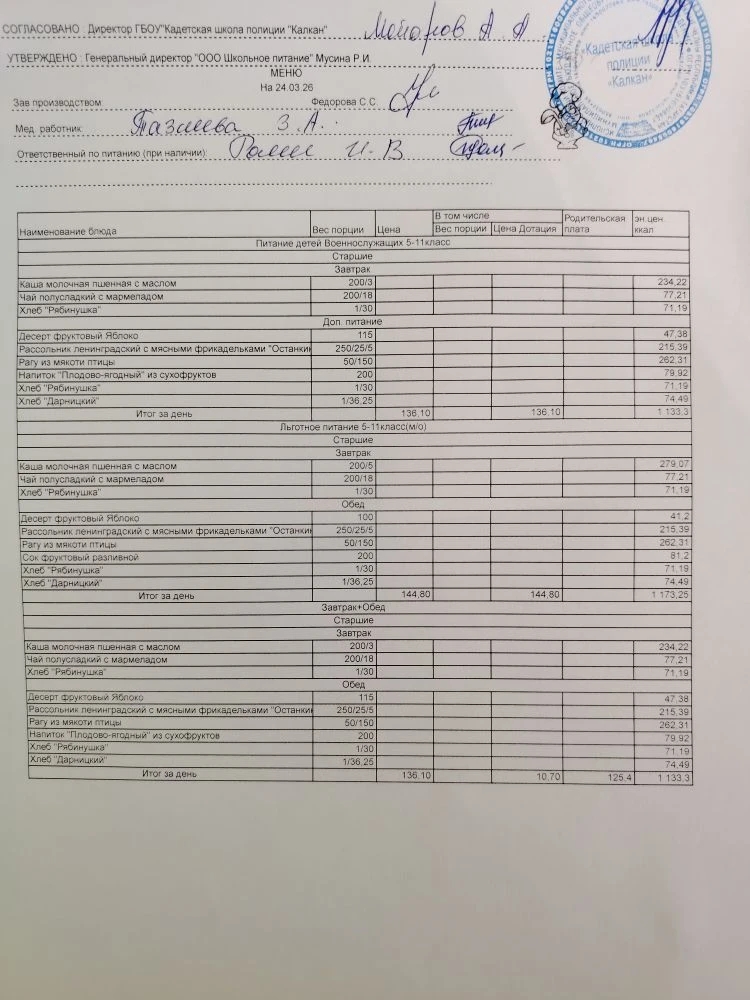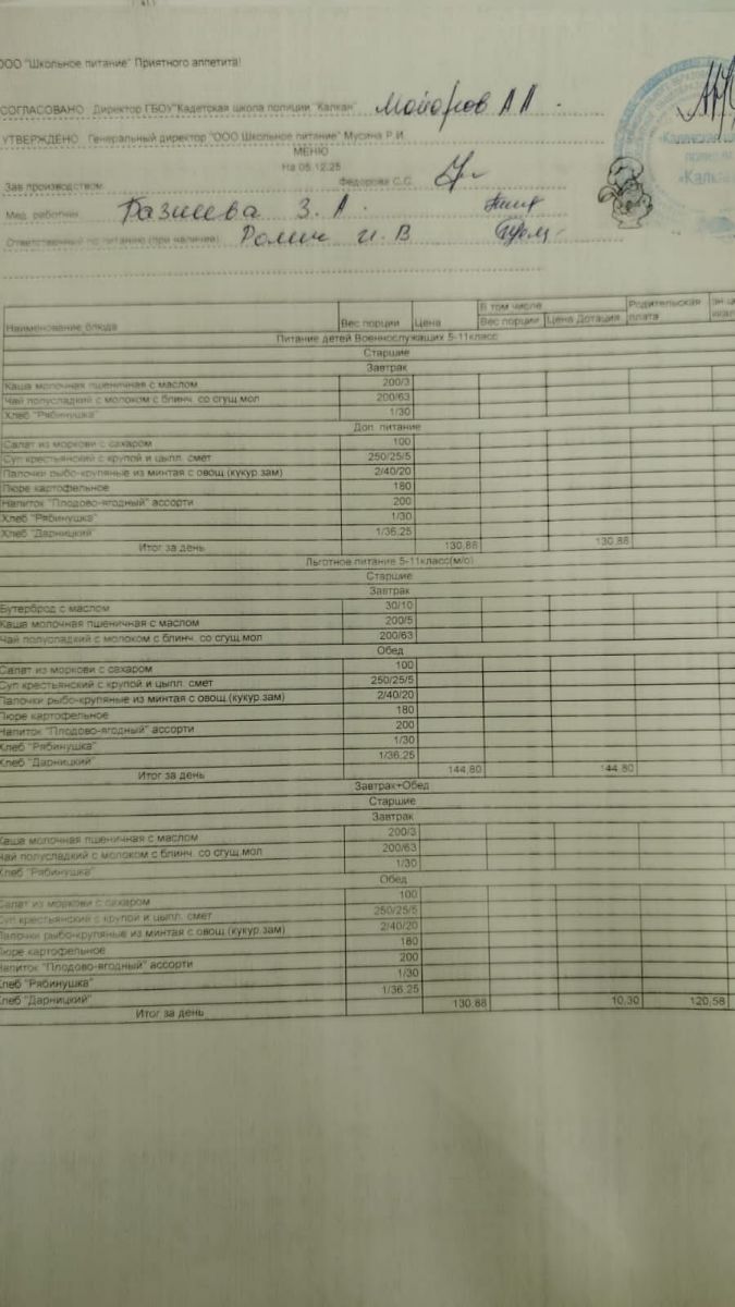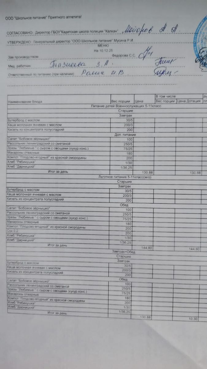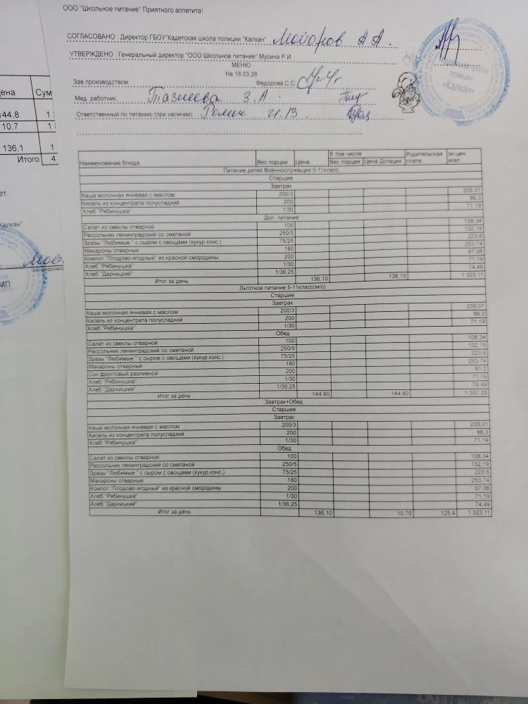 Ежедневное меню