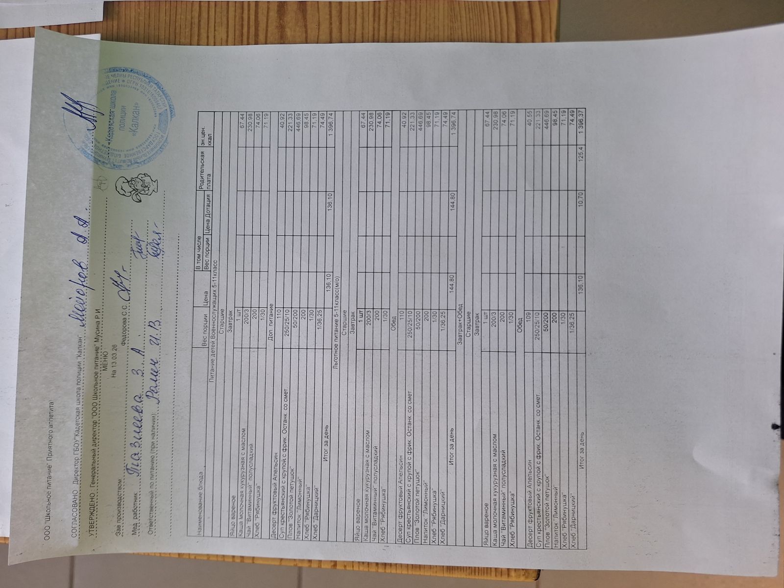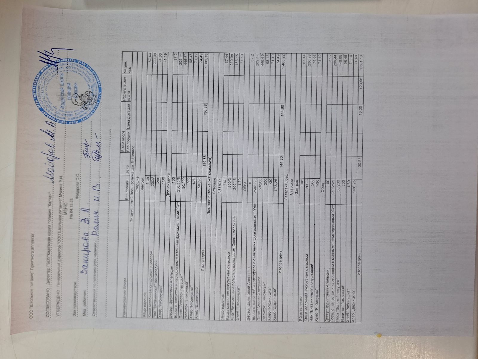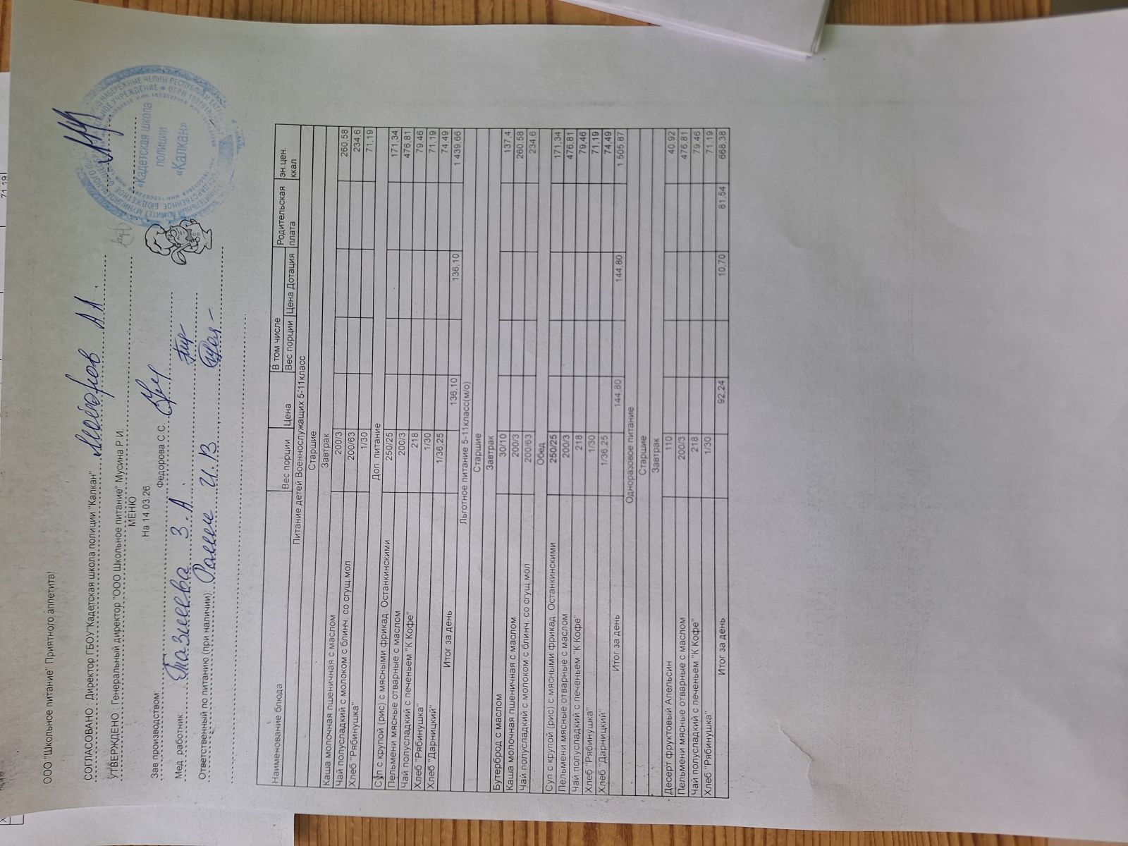Ежедневное меню