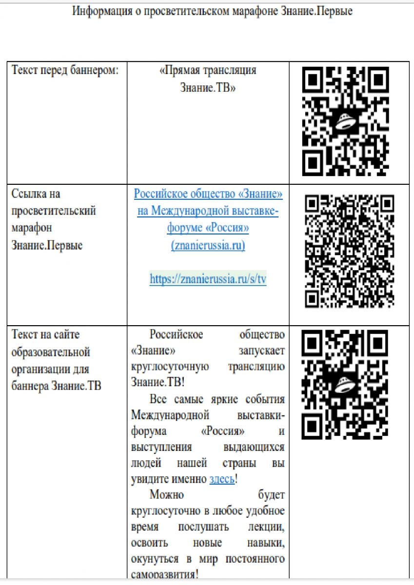 Опубликовано: 24.11.2023/upload/storage/org1507/files/Прин.docxСогласно Указу Президента Российской Федерации от 29 марта 2023 г. № 215 «Об Организационном комитете по подготовке и проведению Международной выставки-форума «Россия» и в целях демонстрации важнейших достижений России в различных отраслях экономики в 2023–2024 годах на территории ВДНХ в Москве в период с 4 ноября 2023 года по 12 апреля 2024 года пройдет Международная выставка-форум «Россия» (далее – Выставка). Выставка станет площадкой для крупнейших образовательных, деловых и культурно-развлекательных мероприятий страны. 4-6 ноября состоится федеральный просветительский марафон Знание.Первые (далее – Марафон), на котором выступят более 150 лекторов - звѐзд, лидеров бизнеса, учѐных, популяризаторов науки и государственных деятелей. Значимые события Выставки и Марафона ежедневно будет освещать потоковый круглосуточный канал Знание.ТВ, на котором буден собран самый интересный и актуальный просветительский контент.