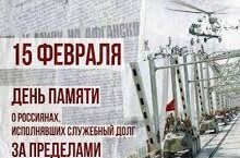 15 февраля – 16.02.2024 15 февраля – День памяти о россиянах, исполнявших служебный долг за пределами Отечества. В этот день
