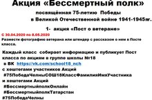 Акция "Пост о ветеране" помогает нам помнить тех, кто совершил для нас великий подвиг - сохранил Родину, свободную Родину.