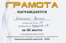 Поздравляем ученика нашей школы Зиганшина Руслана (классный руководитель - Безрукова Л.В.) с почетным 3-им местом в муниципальном этапе республиканского конкурса вожатского мастерства "Замечательный вожатый - 2020"! Желаем здоровья и успехов!