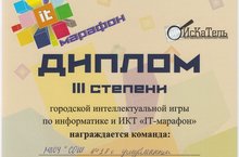 Команда учащихся 9а класса заняла 3 место в городской интеллектуальной игре по информатике "IT-марафон".