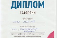 Команда учащихся 9-х классов заняла первое место в городской игре "Информационный лабиринт" в рамках профессиональной недели факультета менеджмента и инженерного бизнеса Казанского инновационного университета им. В.Г.Тимирясова (Набережночелнинский филиал). Руководитель учитель информатики и ИКТ Гаянова Н.Н. Поздравляем победителей и желаем дальнейших творческих успехов!