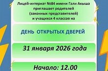 Лицей-интернат №84 имени Гали Акыша приглашает родителей (законных представителей) и учащихся 4 классов на