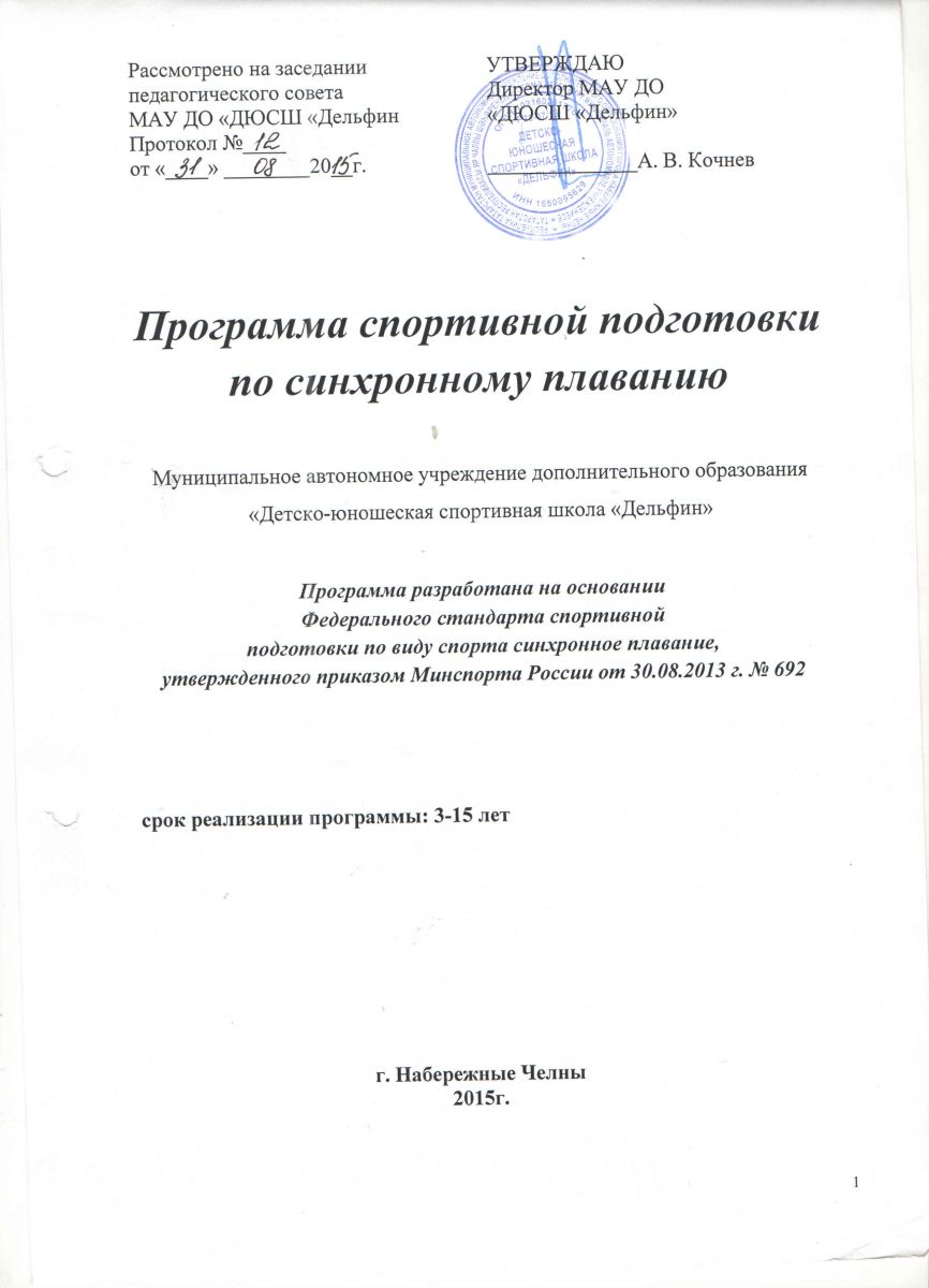 Титульный лист программы спортивной подготовки по синхронному плаванию