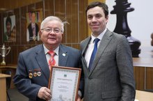 Начальник управления физической культуры и спорта- Р.М. Насрединов поблагодарил за значительный вклад в развитие спорта Почетной грамотой управления физической культуры и спорта работников СШ "Заря":