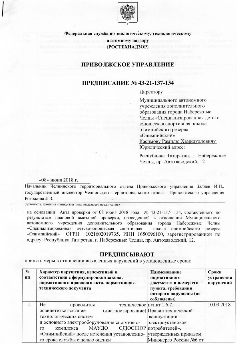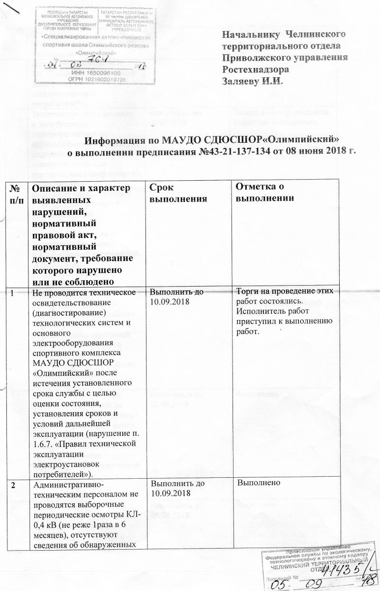 Отчет о выполнении предписания 2017год ( органом государственного контроля (надзора)