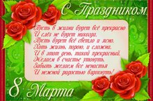 Милые, нежные, прекрасные женщины! Пусть этот день, 8 Марта, подарит вам прекрасное настроение, исполнение всех сокровенных желаний! Пусть он станет стартом для новых начинаний, которые принесут только радость! Искренних вам комплиментов и добрых слов всегда! С весенним праздником! 07.03.2018