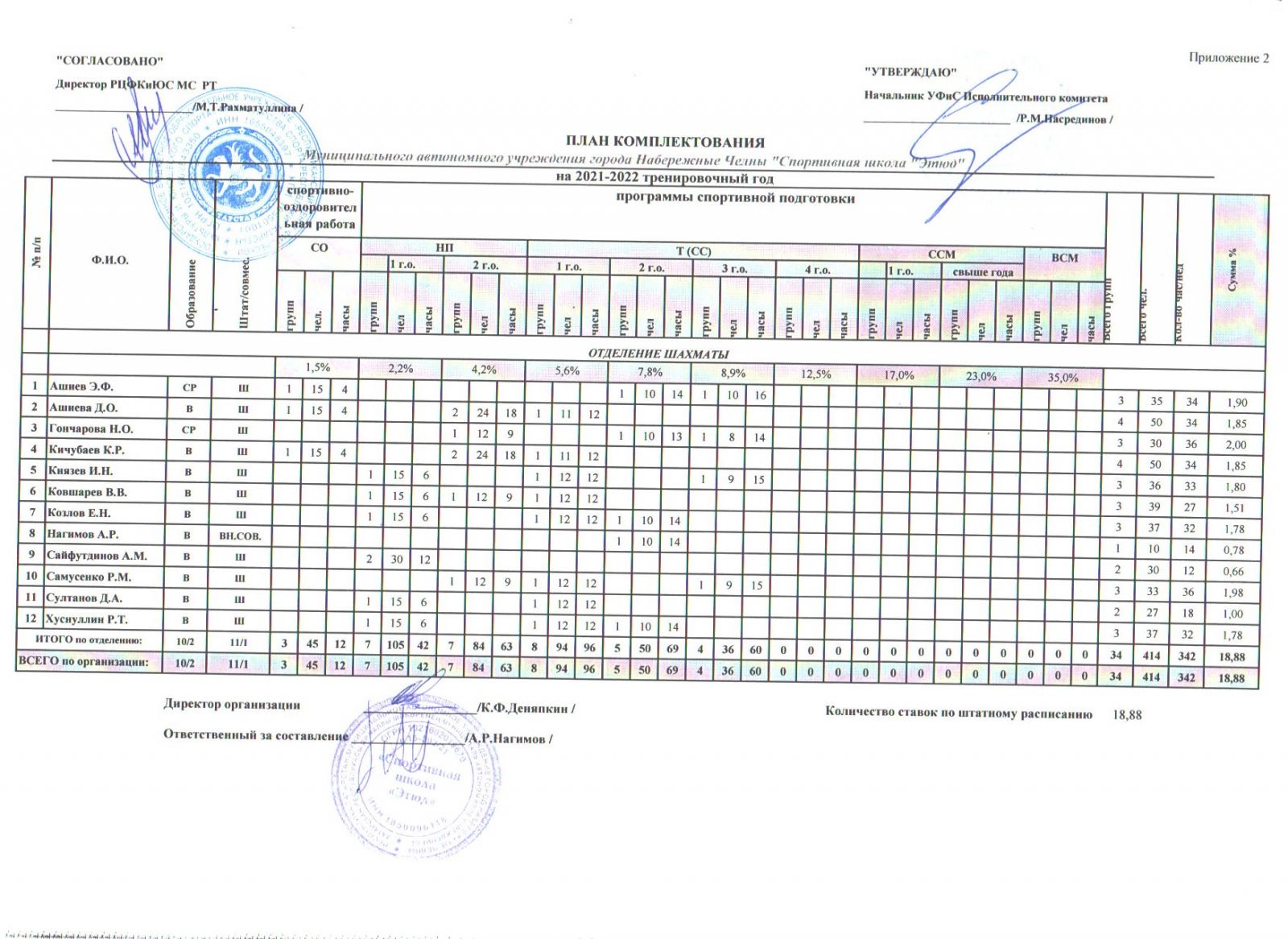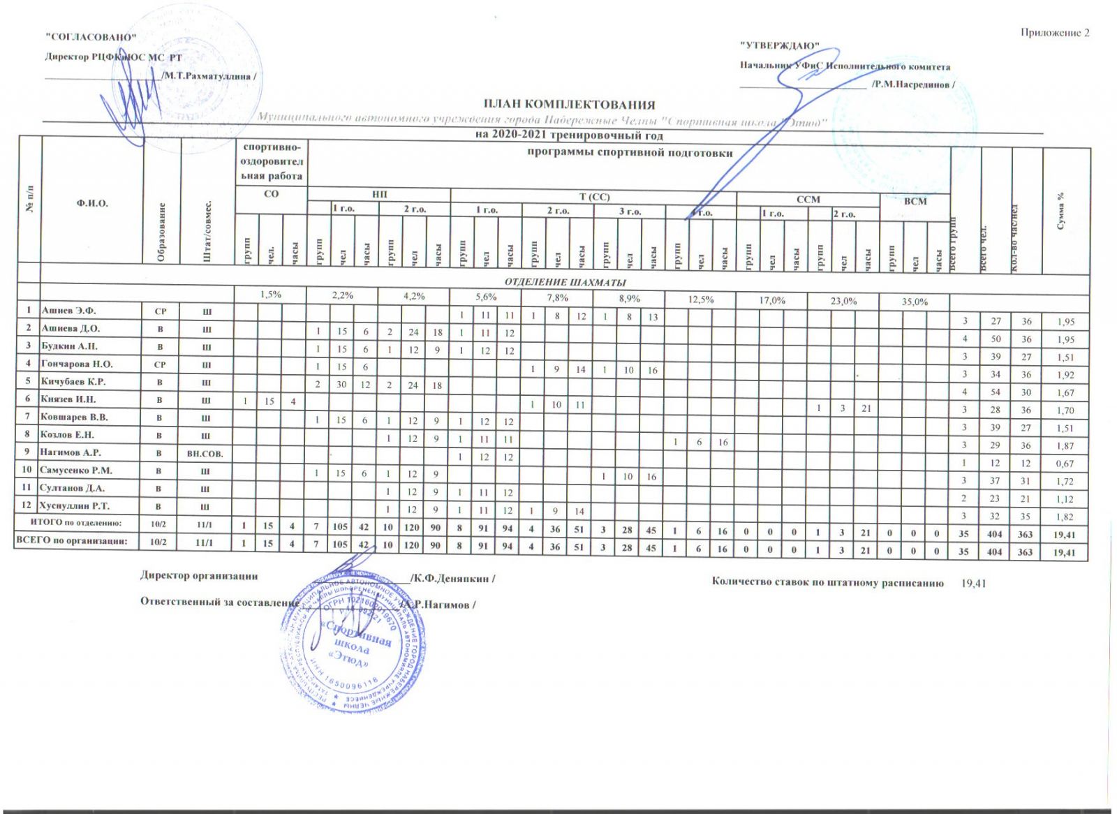 План комплектования на 2024-2025 учебно-тренировочный год.