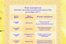 Анонс. План мероприятий ДМШ №1 на октябрь 2017 г. 29.09.2017