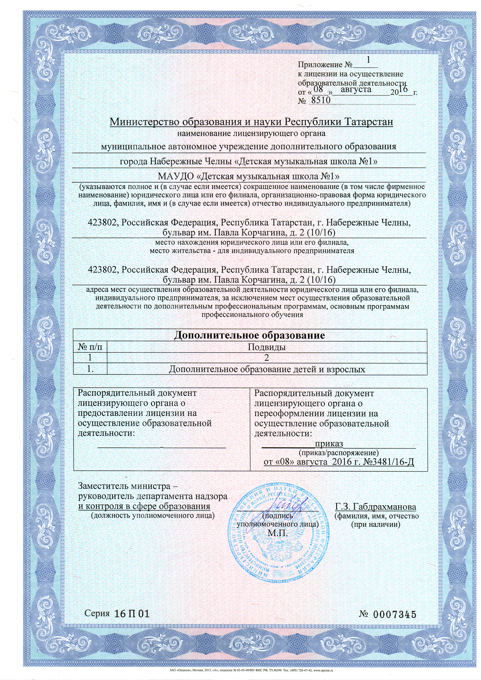 муниципальное автономное учреждение дополнительного образования города Набережные Челны "Детская музыкальная школа №1"