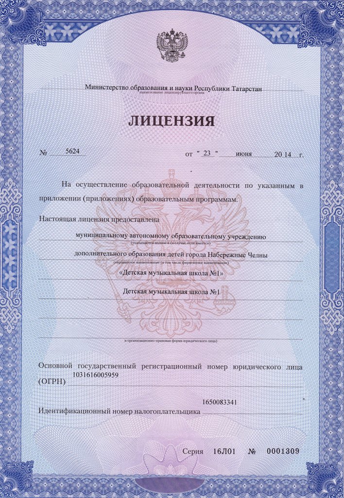 муниципальное автономное учреждение дополнительного образования города Набережные Челны "Детская музыкальная школа №1"