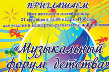 АНОНС Дорогие жители и гости города! Приглашаем вас для участия в концертно - развлекательной программе «Музыкальный форум детства» в рамках проекта «Party каруселька» 21 сентября 15.00 Парк «Победа» 15.09.2017