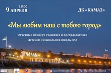 9 апреля 2026 г. в ДК "КАМАЗ" состоится Отчетный концерт учащихся и преподавателей.Ссылка на приобретение билетов: https://bileton.ru/events/otchetnyy-koncert-my-lyubim-nash-s-toboyu-gorod-245853