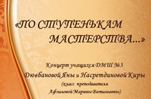 Приглашаем на нашу страницу Вконтакте на видео-концерт учащихся ДМШ N3 Дювбановой Яны и Насретдиновой Киры (преподаватель Афзалова Марина Витальевна).