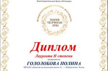 Поздравляем с успешным участием в Международном конкурсе-фестивале "Зимние творческие игры" в г.Москва Гололобову Полину.