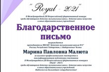 Поздравляем Малюта Марину Павловну и её учениц Цапкову Елизавету и Балаеву Софию! В очередной раз воспитанники ДМШ N3 показали высочайший уровень исполнительского мастерства на II Международном фортепианном конкурсе среди обучающихся ДМШ, ДШИ и иных образовательных учреждений "Royal - 2021".